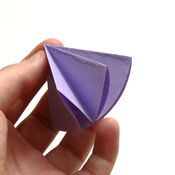 Hat man die weiteren fünf gefaltet, klebt man sie zu einer Blüte zusammen. Beachte die Fläche, die bei jedem Blütenblatt mit Kleber eingestrichen wird. Wenn Du in die Blüte später noch einen Stiel stecken möchtest, sollte der Kleber mit etwas Abstand zu dem Rand, an dem alle Blütenblätter zusammengeklebt werden, aufgetragen werden.